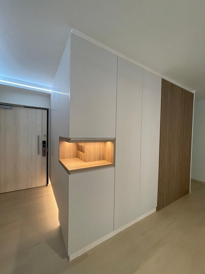 Complete HDB Residential Renovation featuring a clean, minimalist Scandinavian aesthetic, designed for timeless comfort and modern functionality.