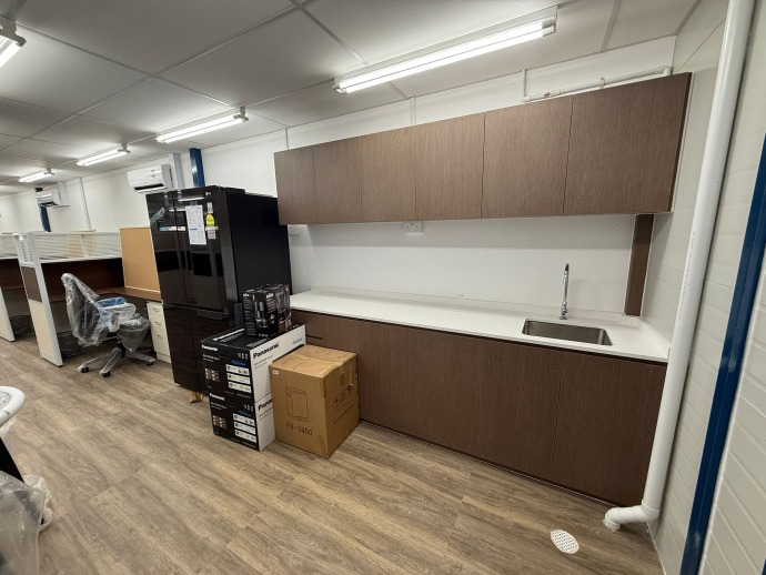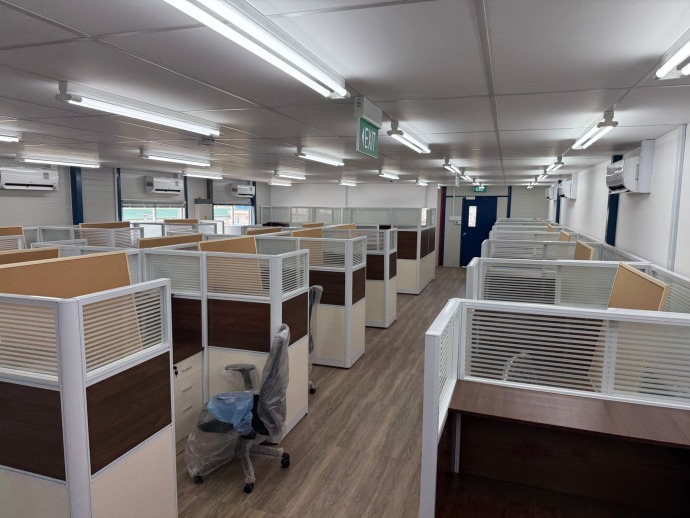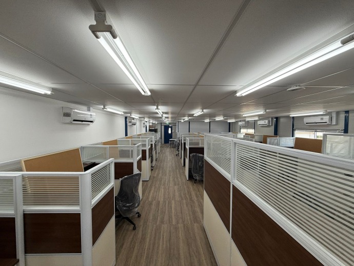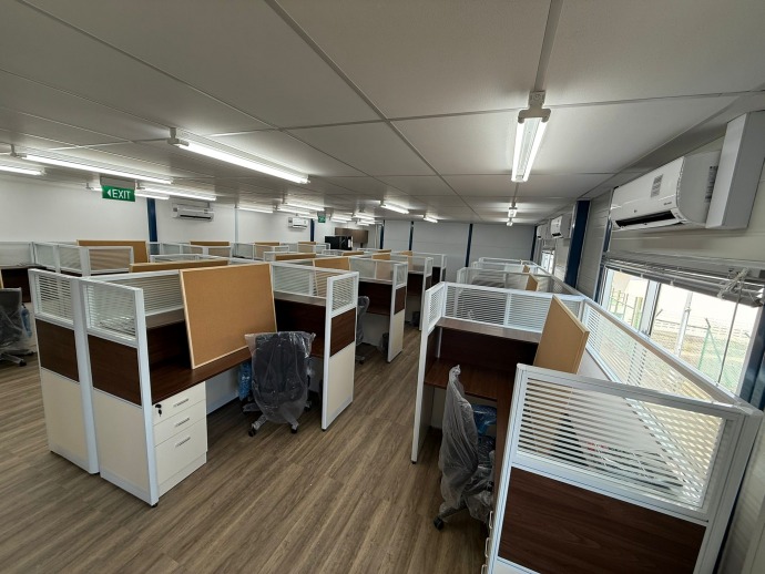 We delivered a fully functional temporary office space featuring a clean, timeless design theme. Our scope included custom furniture design, carpentry installation for workstations, a well-equipped pantry area, and a foldable partition to allow flexible space usage. The project was completed with all essential office equipment to ensure a seamless and productive working environment.