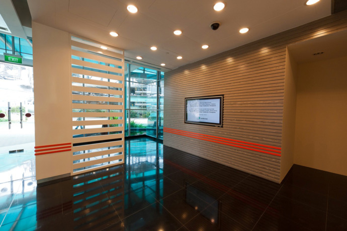 The overall building follows a neutral colour scheme with a modern and classic design, with plenty of display elements implements on feature walls. Sembcorp’s cooperate colours, as well as loud colours such as yellow and blue are used to compliment the neutral white and brown colour combination, as well as to brighten the selected areas up.