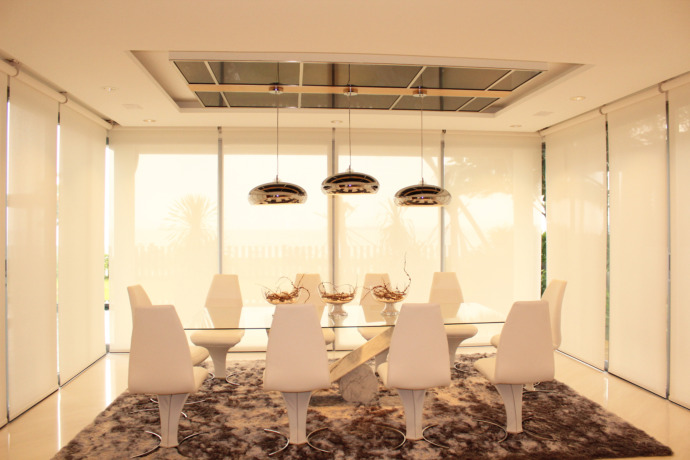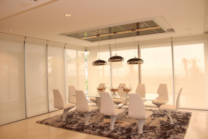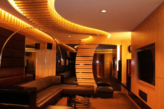 The Sentosa Cove unit follows the classical luxury design theme, using lush furniture and decorative fittings like Persian carpets to complete the overall look. A play on textures on both wall and ceilings gives the theme a modern twist, as well as adding detail to the space.